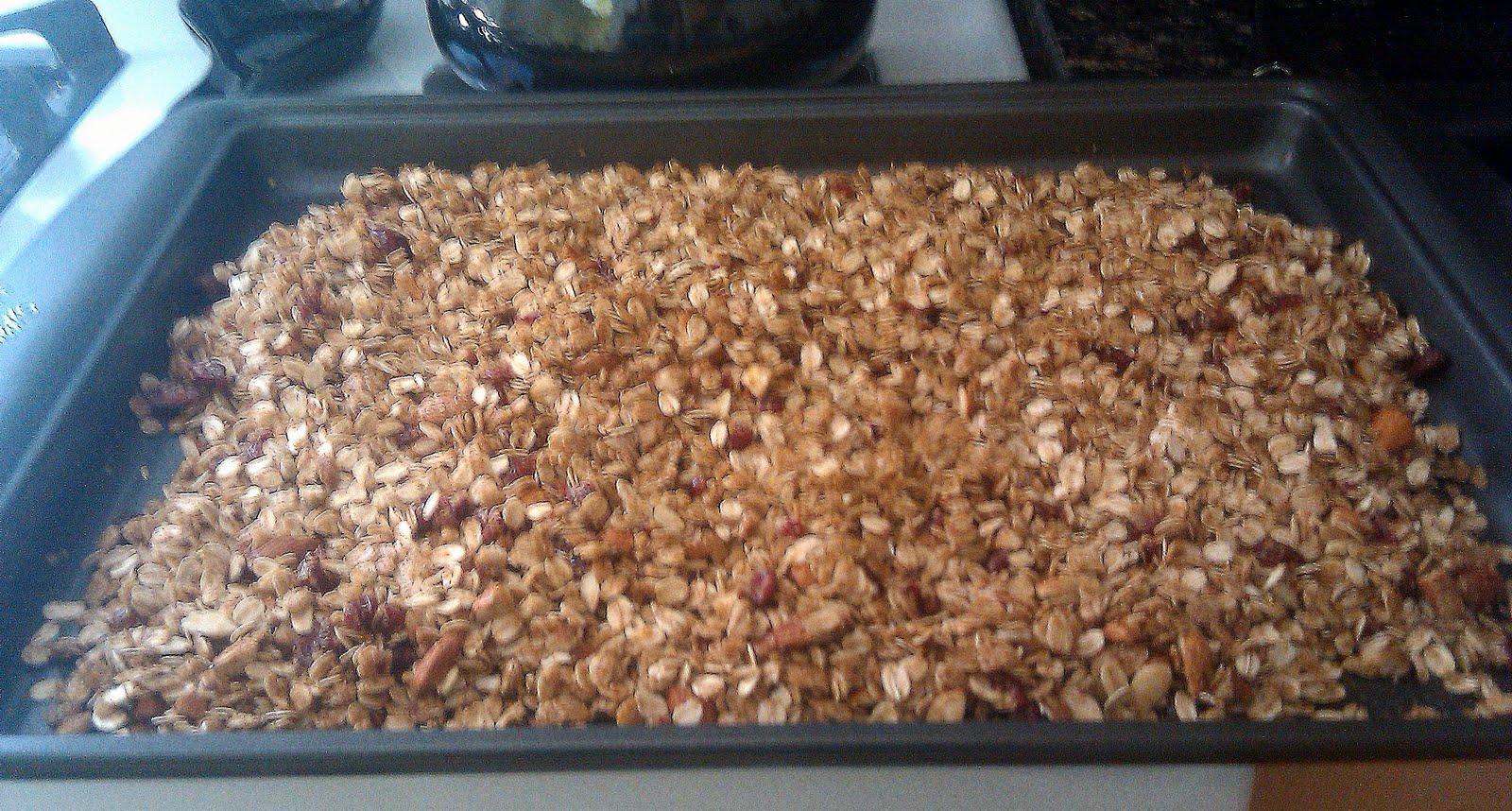 Also in preparation of our camping trip, I prepared some Cranberry and Almond Granola for Ryan. He LOVES this stuff. Eating Well has a great and healthy recipe, too. Check it out.