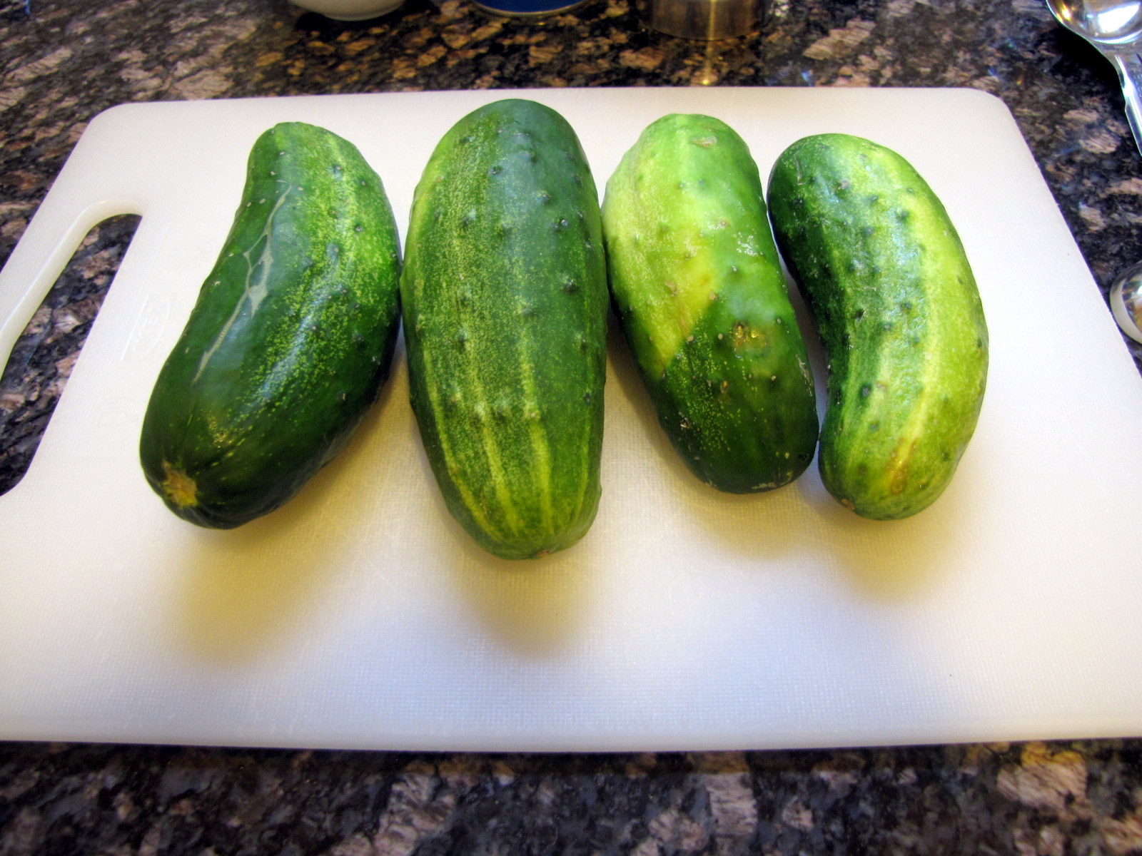 I pulled out four cucumbers from Wednesday's trip to Green City Market and sliced them up accordingly. I had saved an old glass jar to use and only ended up needing two of the sliced cucumbers. Eating Well suggests the spears (at 3.5 pounds) be cut into quarters or eighths. I just eyeballed what looked right. Haha.